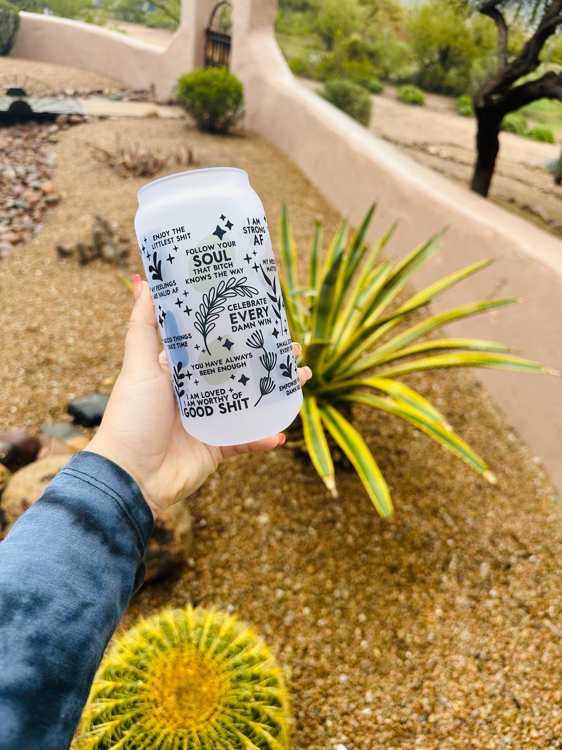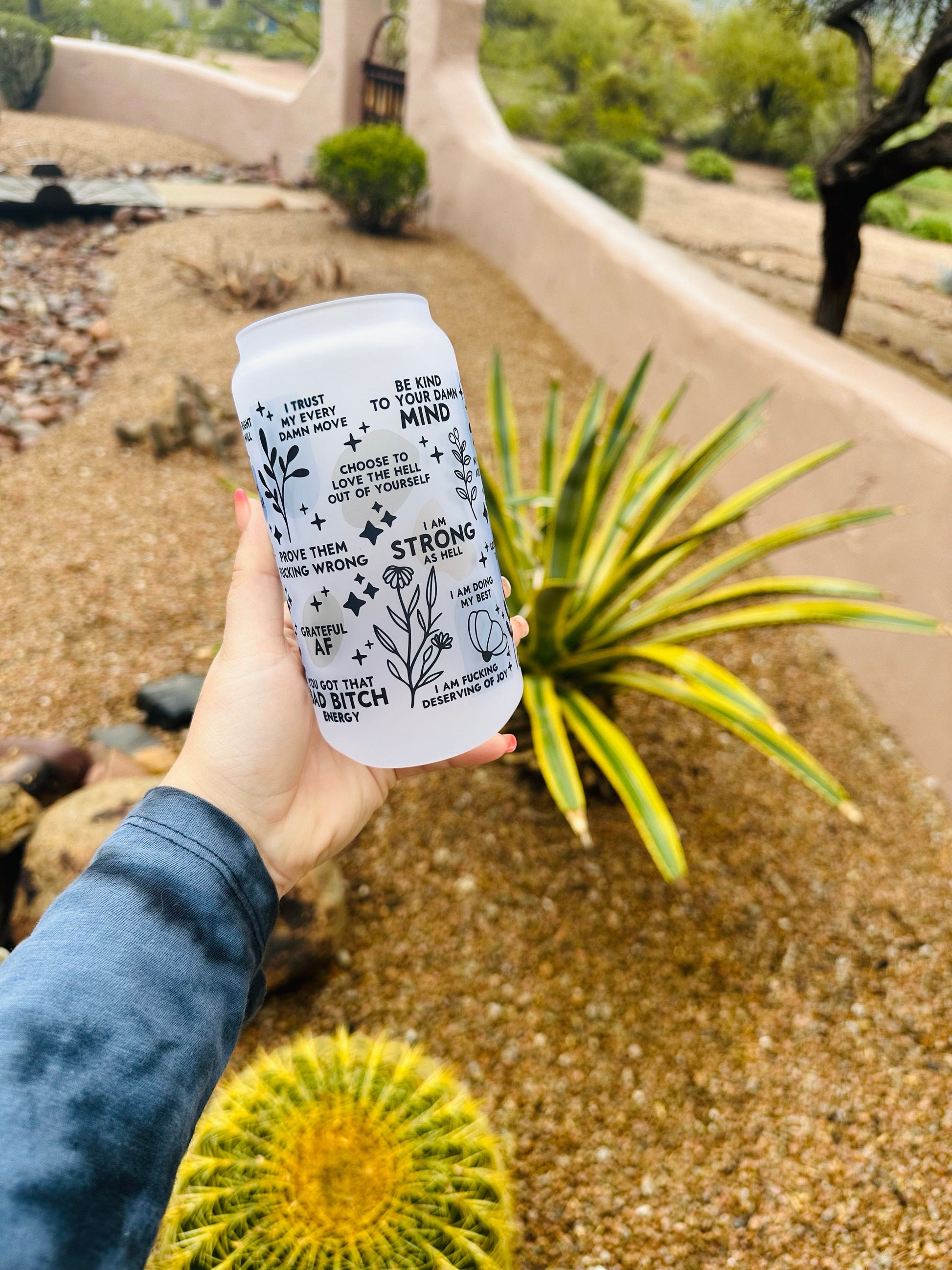 Daily Reminders ( blue tone version ) Printed Libby Glass - Dishwasher Safe