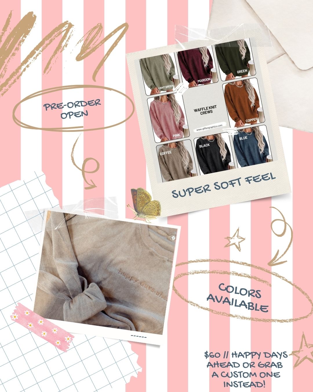 Super soft and comfortable waffle knit crews with embroidered design. I am so excited to offer these, as I have been trying to find high quality ones for you guys for a while! Comes in 7 different colors and choose between size S-XXL.