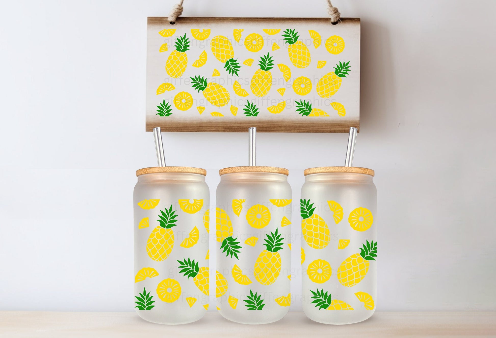 Summer Pineapple Printed Glassware - Dishwasher Safe