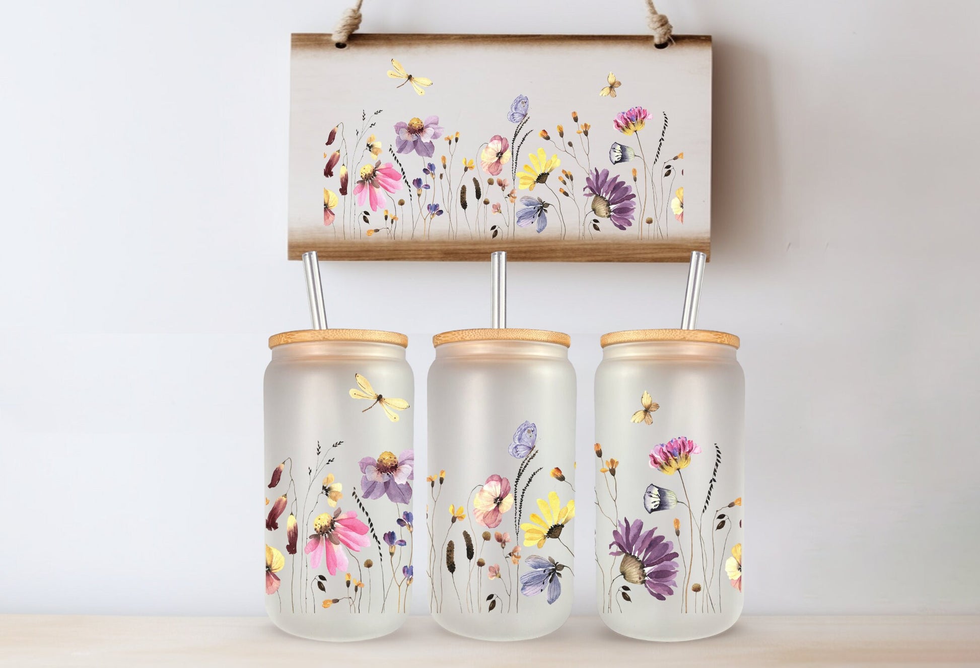 Watercolor Floral Printed Libby Glass - Dishwasher Safe